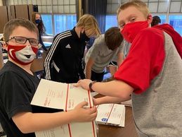 The Builders Club assembled 51 boxes/totes for our soldiers this year with donations from our MJHS students. Students earned a raffle ticket for every three items they donated. Fifteen gift cards from Target, Starbucks, Freddy's and Chick Fil A totaling $100 were awarded to the winners. All prizes were donated by Mr. Chris Bateman, president of the Milford Kiwanis Club.